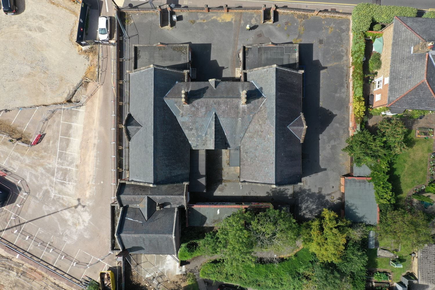 The roof of the building had a complicated layout of flat and pitched roofs with much of the structure not visible from the ground. To carry out the roof survey it would have been necessary to erect scaffolding around the building or use a MEWP to gain access. This approach would have been costly and brings additional risk due to the requirement for personnel to work at height.